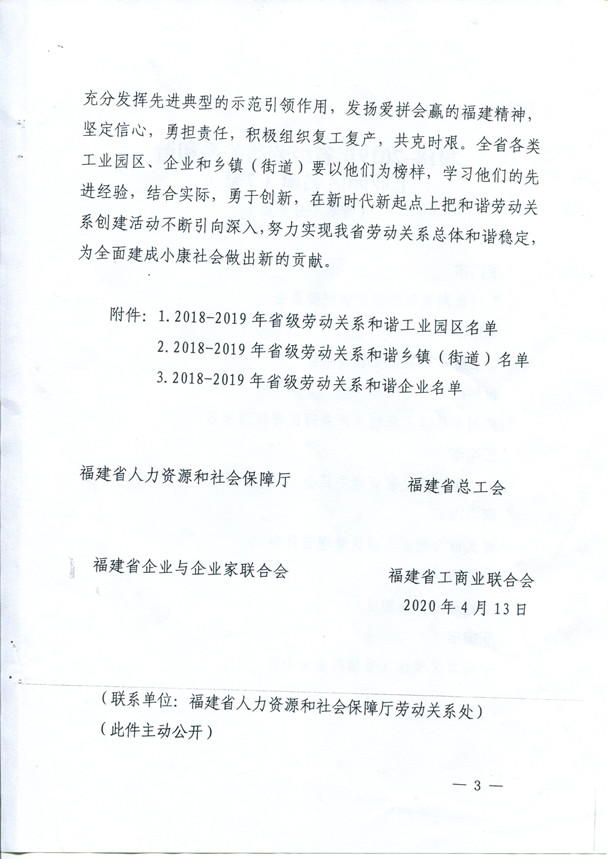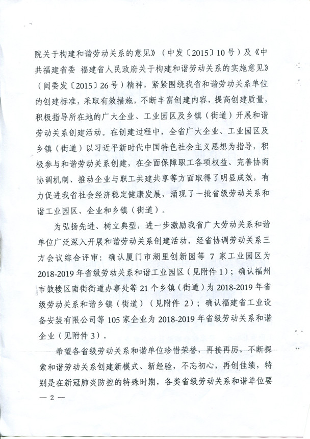 厦门市鹭达眼镜有限公司荣获2018-2019年福建省劳动和谐企业