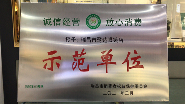 瑞昌市鹭达眼镜店荣获“诚信经营,放心消费”示范单位。