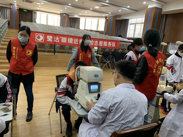 2022年2月25日,鹭达眼镜近视防控志愿服务队来到华侨中学,为初一初二两个年段的学生提供视力筛查服务。
