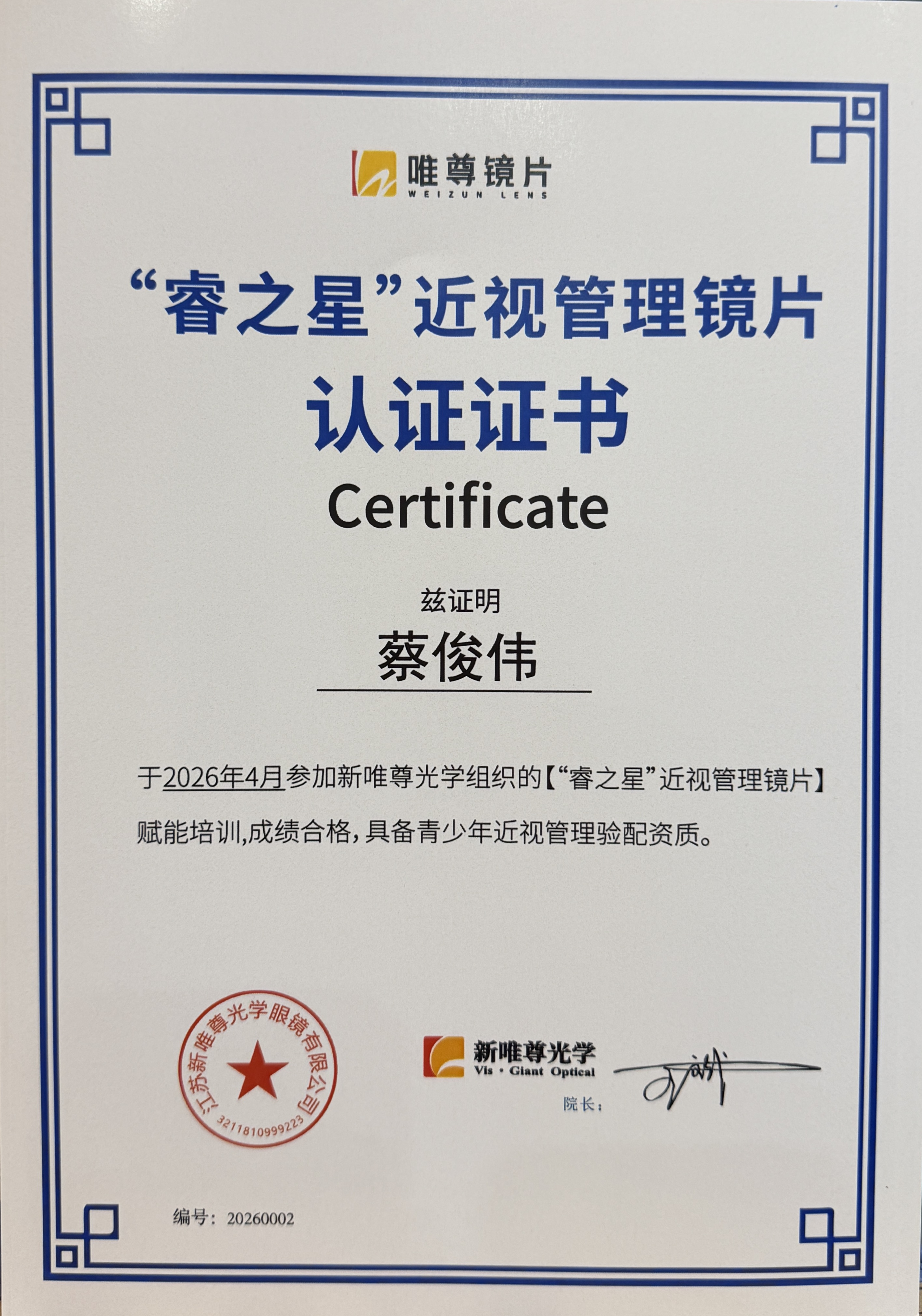 硬核认证|鹭达眼镜掌握唯尊“睿之星”青少年近视管理镜片验配核心技能