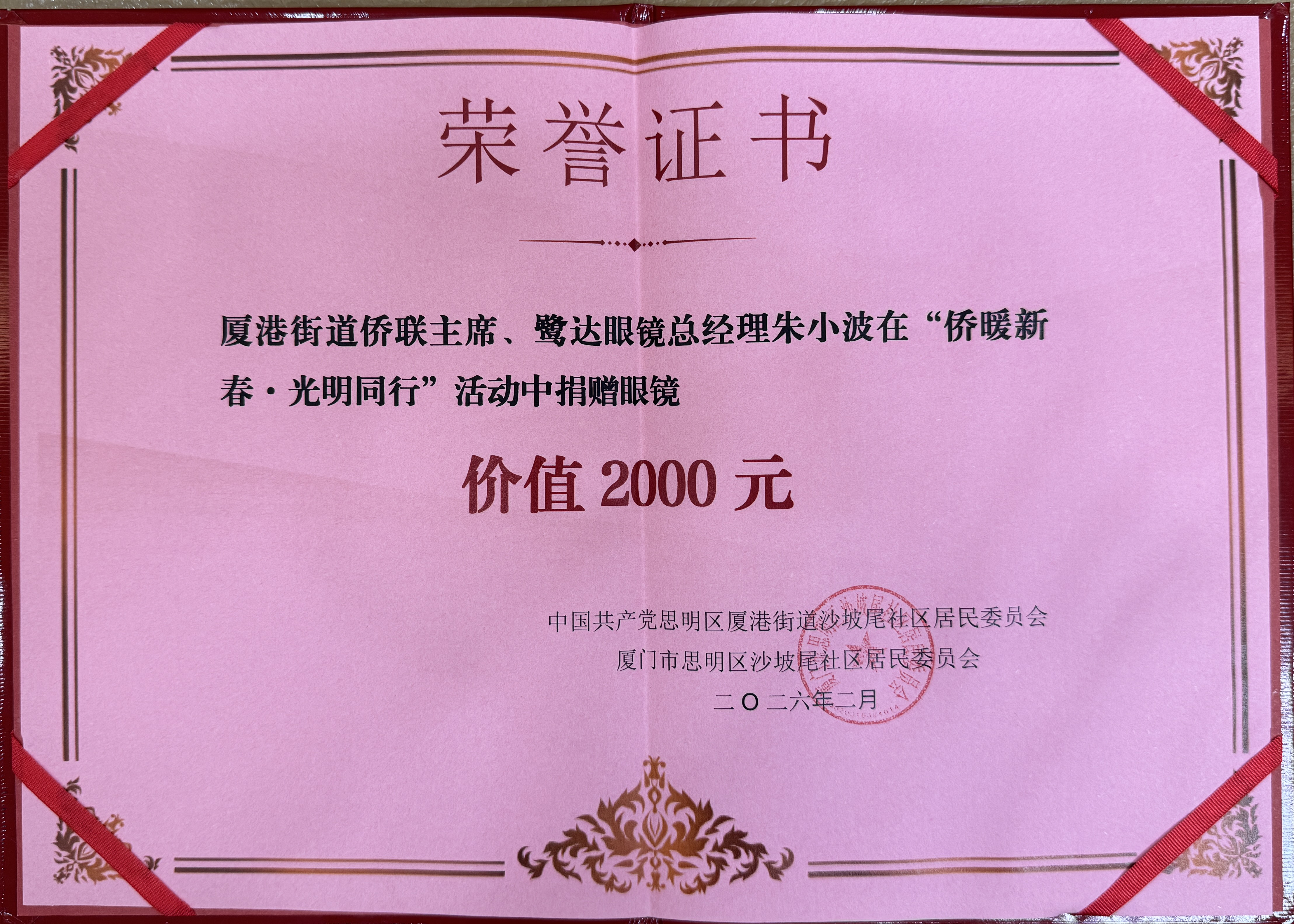 本次参与“侨暖新春·光明同行”活动,既是鹭达践行企业责任的又一次实践,也是侨界力量与本土企业携手服务社区的生动体现。 一份份眼镜,传递的是新春暖意;一次次善举,凝聚的是社会温情。