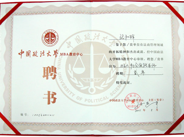 鹭达董事长张和辉受聘中国政法大学MBA社会实践导师[2011-5-3]