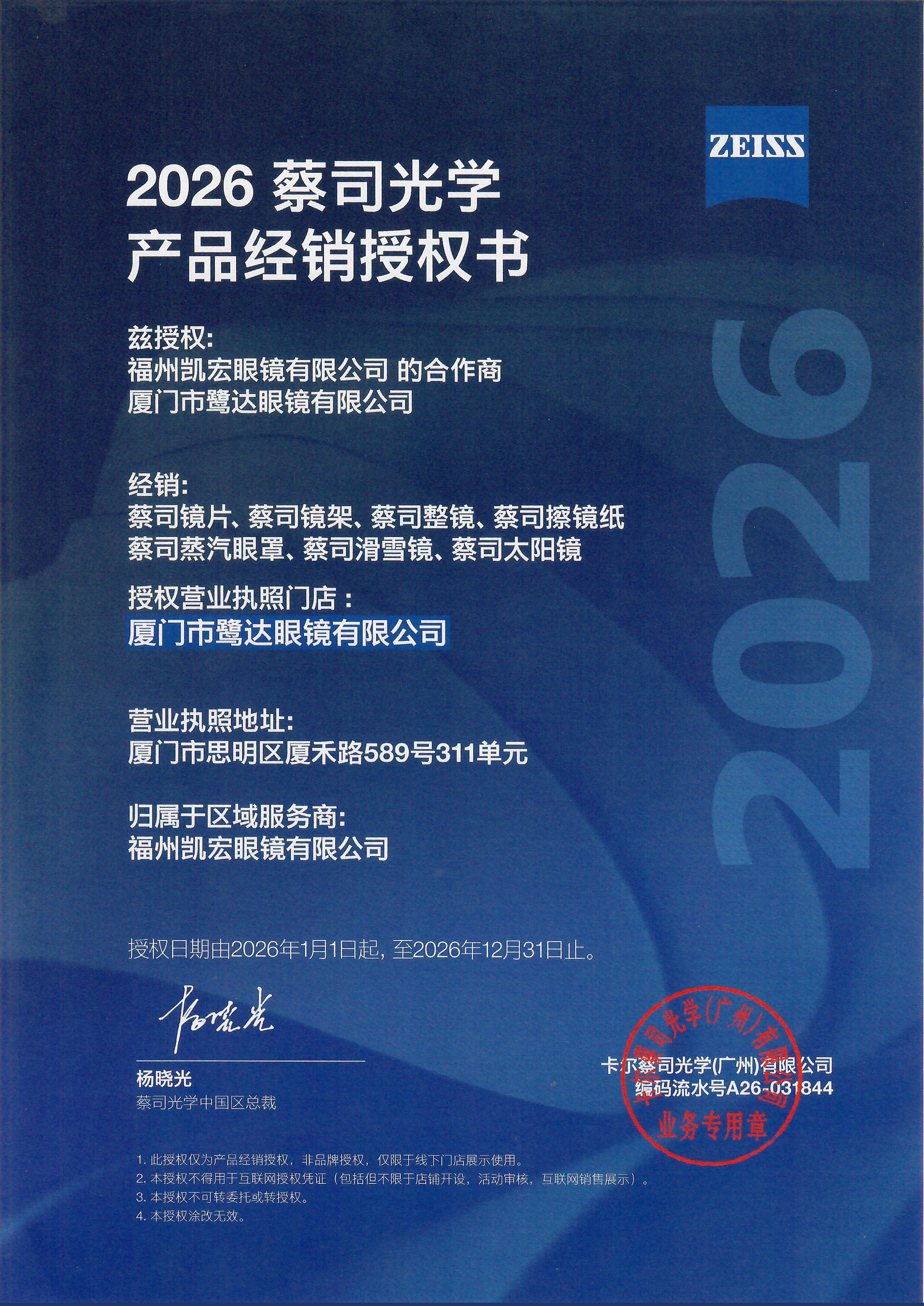 作为深耕厦门视光行业 30 载,“厦门老字号” 鹭达眼镜,正式荣获蔡司镜片官方授权。这是国际光学巨头对鹭达专业积淀的权威认可,更是鹭达为厦门消费者提供高端正品配镜服务的重磅承诺。 作为全球光学领域 176 年标杆,德国蔡司(ZEISS)自 1846 年创立以来,始终以医疗级光学技术、严苛品控标准定义行业高度。从诺贝尔奖实验室到航天探测,从精密医疗设备到高端镜片,蔡司以 T * 镀膜、自由曲面精密研磨、高透光低色散等核心技术,实现高清、舒适、耐用的极致视觉体验,是全球专业人士与高端用户的首选。 这份对专业的极致追求,与鹭达眼镜创始人张和辉博士的初心高度契合。张和辉博士,国家高级验光师、享受政府特殊津贴的视光专家。从业 30 年,他带领鹭达视光团队深耕视光技术研发,手握 16项眼镜专利,创办鹭达视光学职业培训学校与厦门市眼视光学研究所,构建 “产学研销” 一体化专业体系。作为福建省验光技能大师、厦门市拔尖人才,他带领鹭达斩获 “中国商业名牌企业”“全国 AA 级眼镜验配企业” 等数十项国家级荣誉,用专业筑牢厦门视光行业标杆。 此次授权,鹭达眼镜将正品蔡司镜片与张和辉博士团队精准验光、个性化方案定制的核心优势深度融合,从视力检测、镜片适配到精准加工,全流程严苛把控,为厦门消费者提供 “百年蔡司正品 + 30 年本土专业” 的高端配镜服务。 三十载匠心守初心,百年蔡司筑专业。未来,鹭达眼镜将继续以张和辉博士的专业为根基,以蔡司的正品技术为支撑,用专业实力守护每一位消费者的清晰视界。